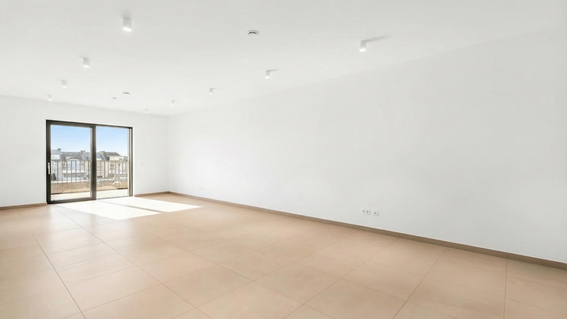 Located on the 3rd and last floor of a high-end residence directly connected to the new Cactus Esch-Lallange shopping centre, this ±94 sqm apartment features an entrance hall with built-in wardrobes, a bright and spacious living area with fully equipped open kitchen and access to a large 14 sqm west-facing terrace, two bedrooms with built-in wardrobes, one of which also has access to the terrace, a shower room, as well as a separate toilet.