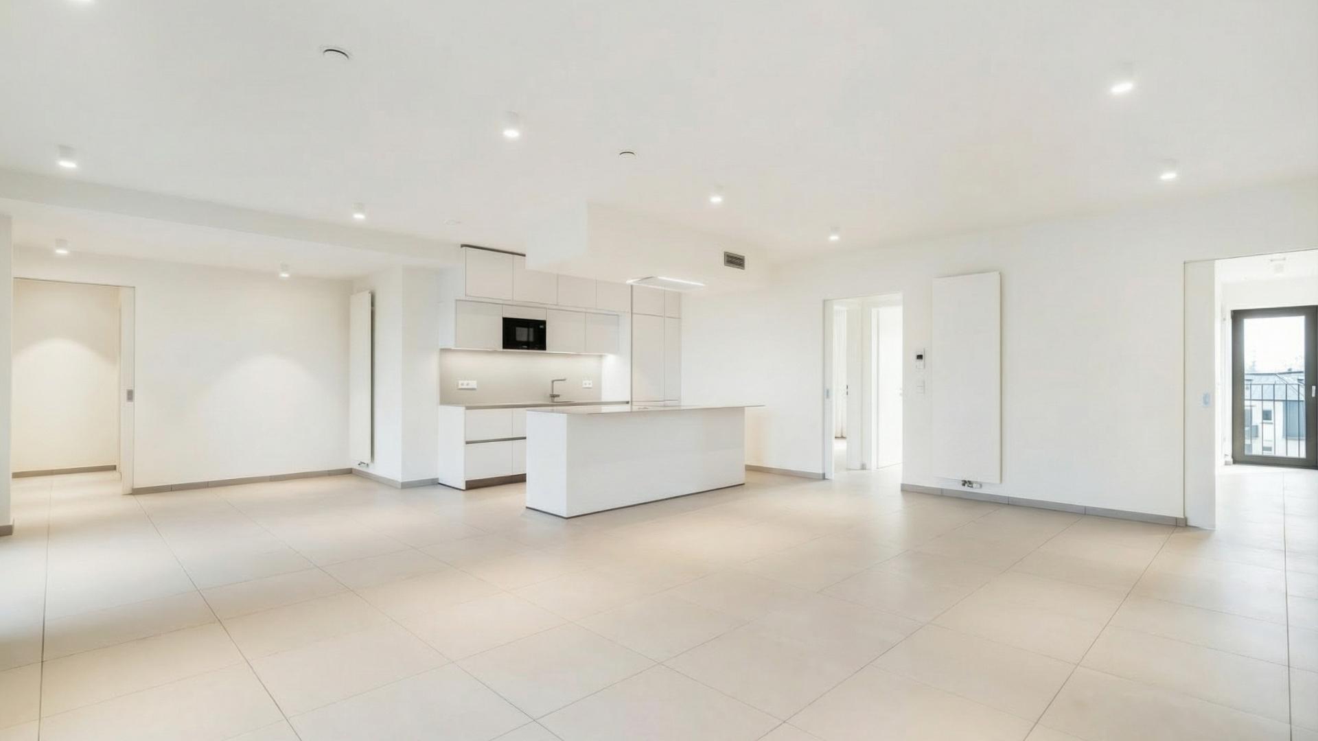 Located on the 3rd and last floor of a high-end residence directly connected to the new Cactus Esch-Lallange shopping centre, this ±115 sqm apartment features an entrance hall with built-in wardrobes, a bright and spacious living area with fully equipped open kitchen and access to a large 14 sqm west-facing terrace, three bedrooms with built-in wardrobes, one of which also has access to the terrace, two shower rooms, as well as two separate toilets.