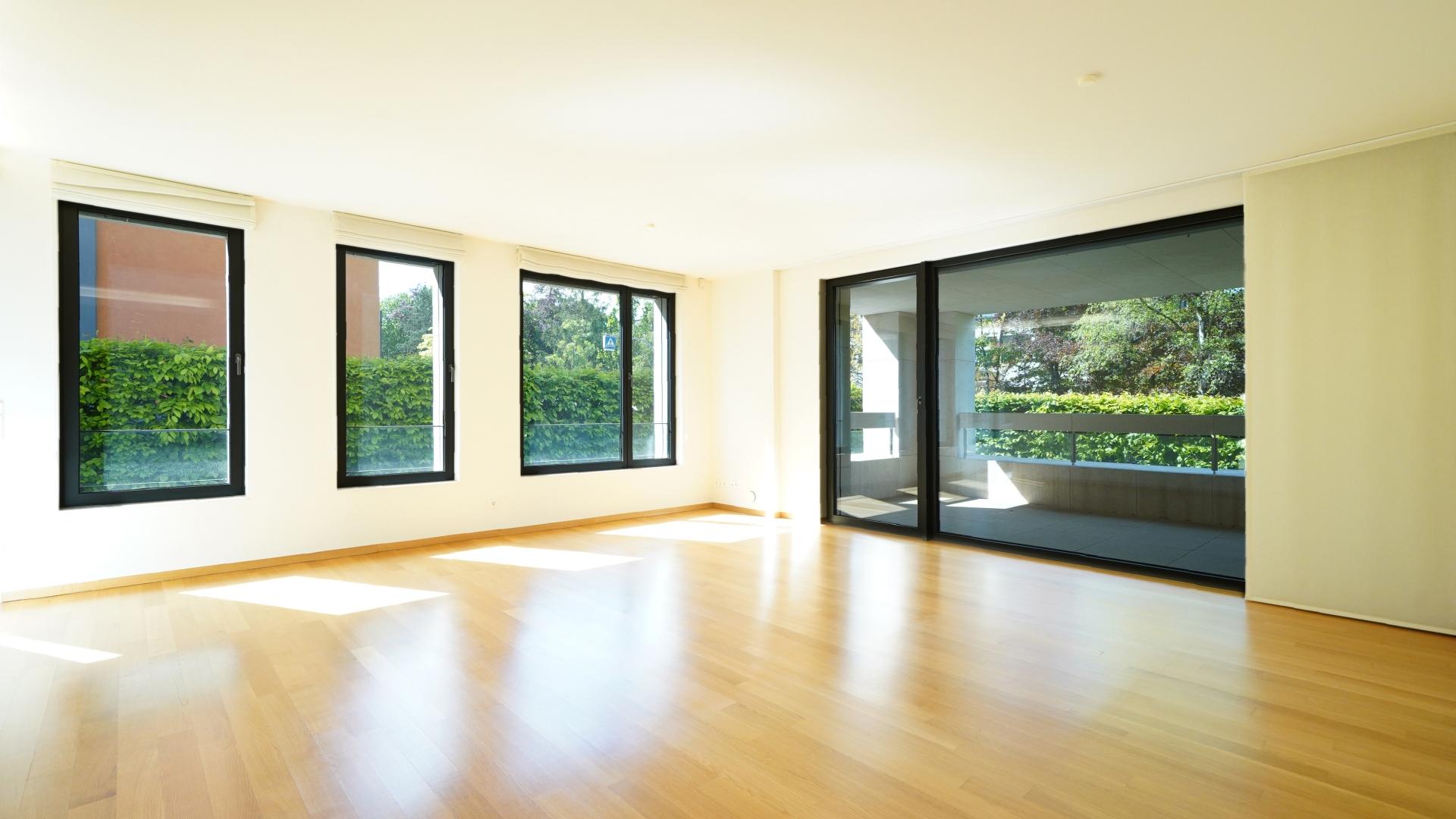 This apartment is located at No. 116 Avenue Pasteur, a peaceful yet convenient location just moments away from the city center, supermarkets, restaurants, parks, forests, bus lines, and the tram that connects Kirchberg to the central railway station.