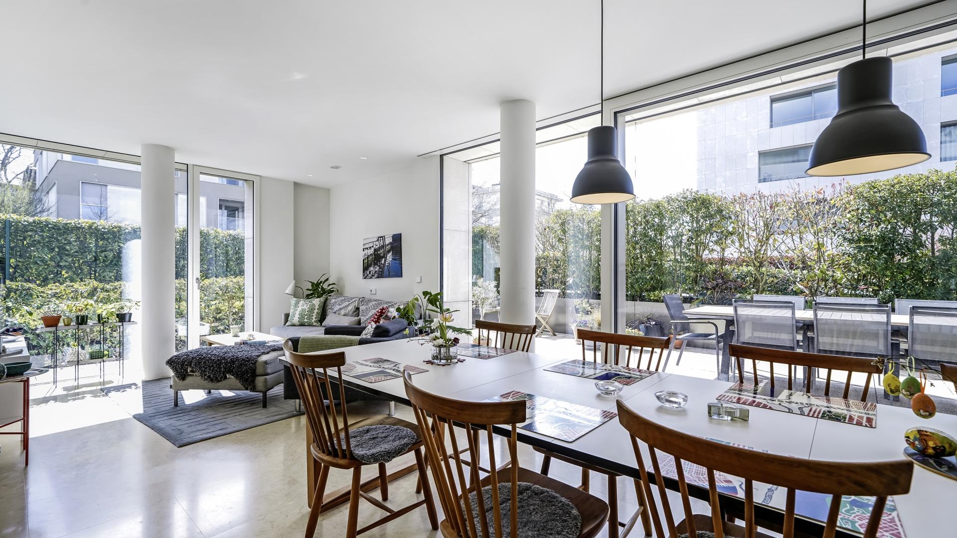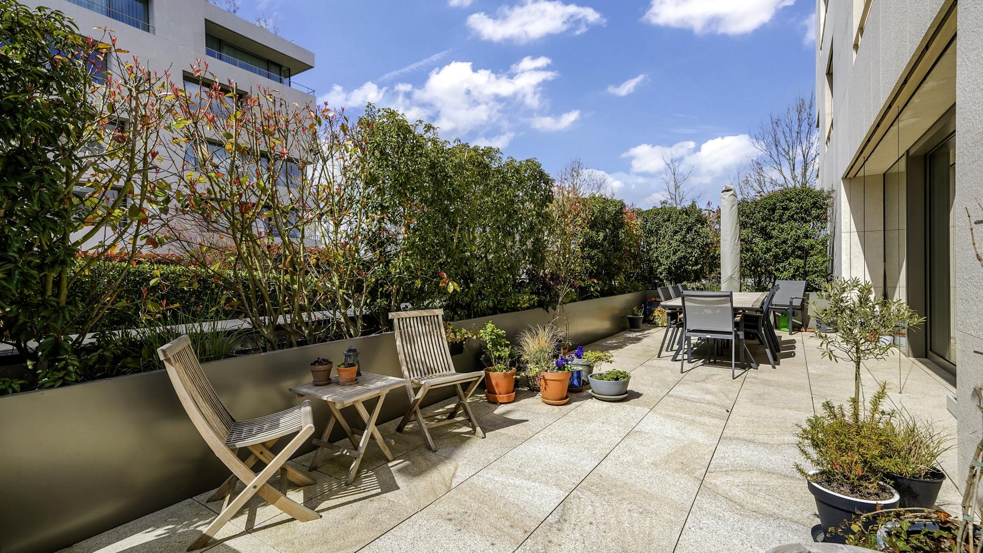 Cet appartement de 120 m² est situé au rez-de-chaussée d’une résidence remarquable. Il se compose d’un hall d’entrée avec vestiaire, d’une cuisine entièrement équipée ouverte sur un vaste séjour donnant accès à une superbe terrasse de ± 43 m², ainsi qu'un wc séparé.