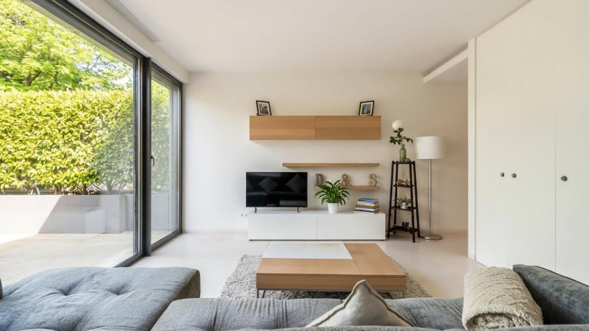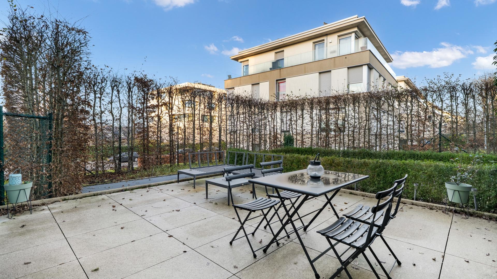 L’appartement de 58 m², situé au rez-de-chaussée, se compose d’une entrée, d’une cuisine entièrement équipée ouverte sur le séjour avec placards intégrés, ainsi que d’un accès à une terrasse.