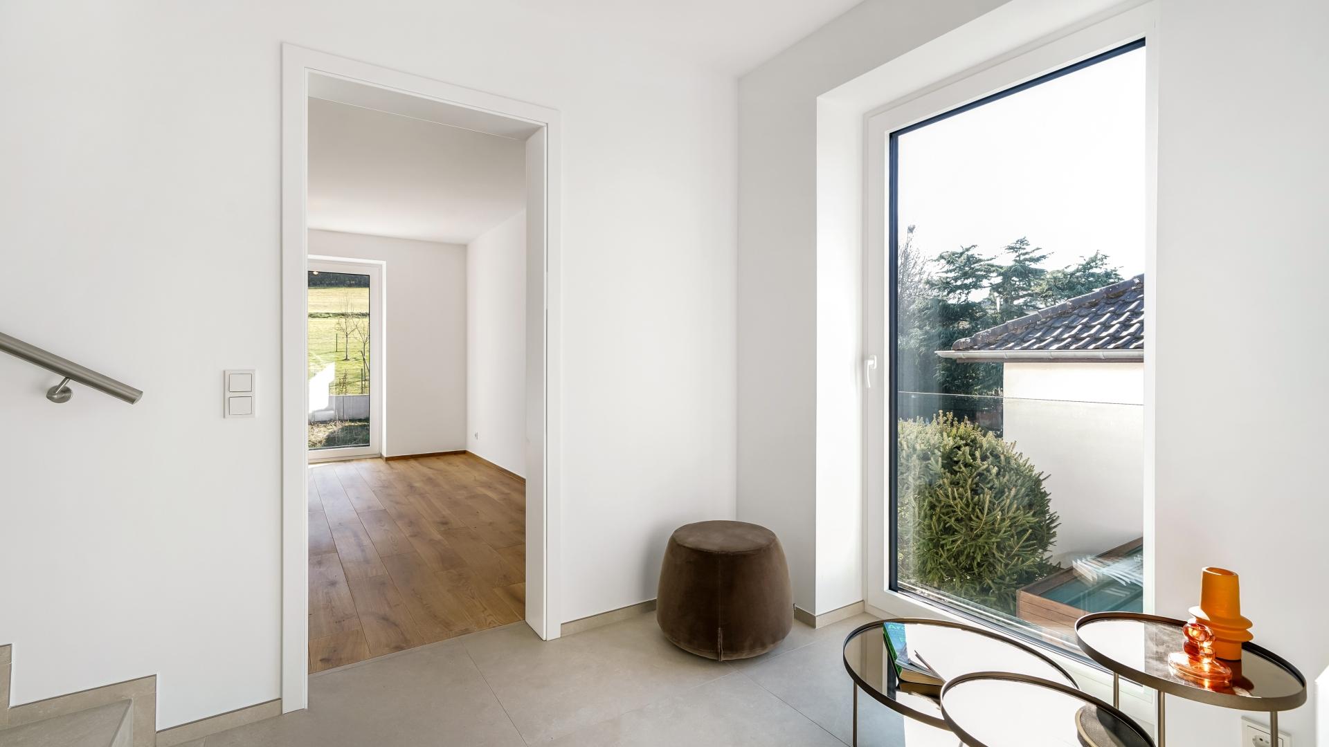 Le palier du 1er étage dessert une généreuse suite parentale avec espace dressing et salle de bains avec douche et wc, deux grandes chambres supplémentaires, une salle de douche et un wc séparé.