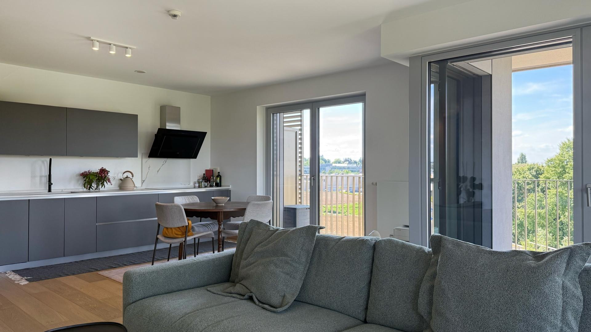 Cet appartement de 62 m², situé au deuxième étage d'une des plus belles résidences de la Cloche d'Or, se compose d’une entrée avec placards, d’une cuisine équipée ouverte sur un beau séjour comprenant plusieurs accès à une grande terrasse de ± 19 m2 avec une belle vue dégagée, une chambre avec accès terrasse ainsi que d'une salle de douche avec wc.