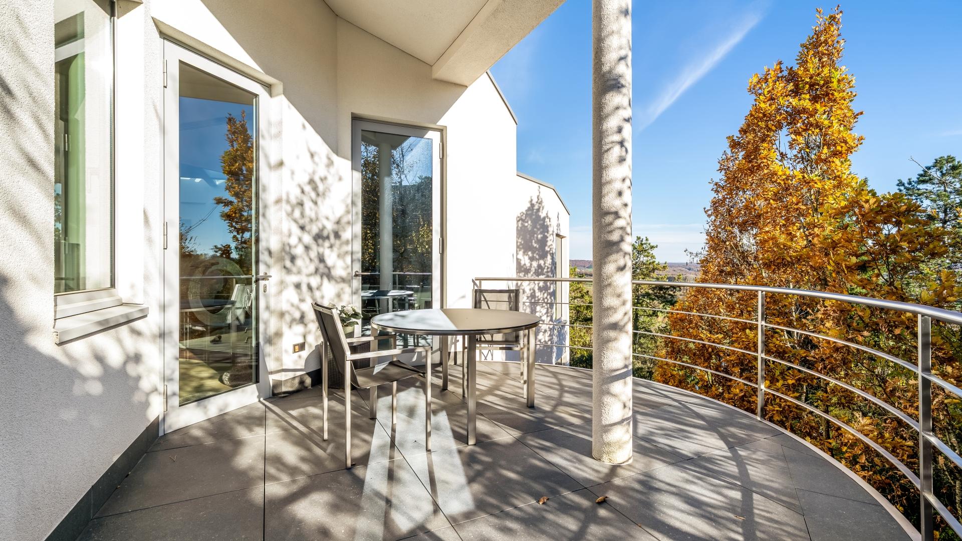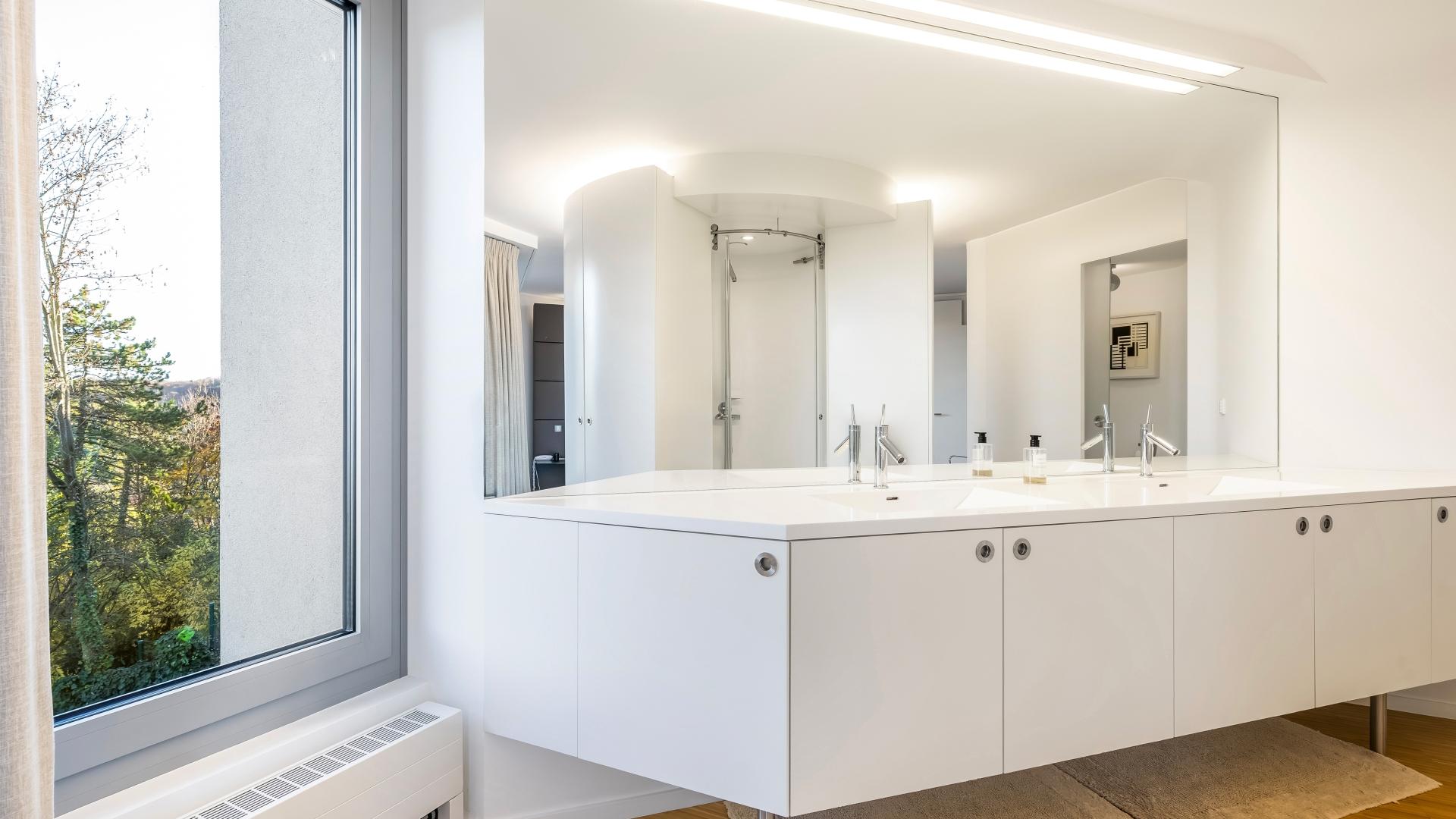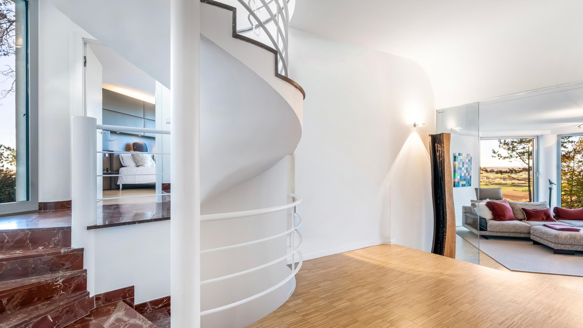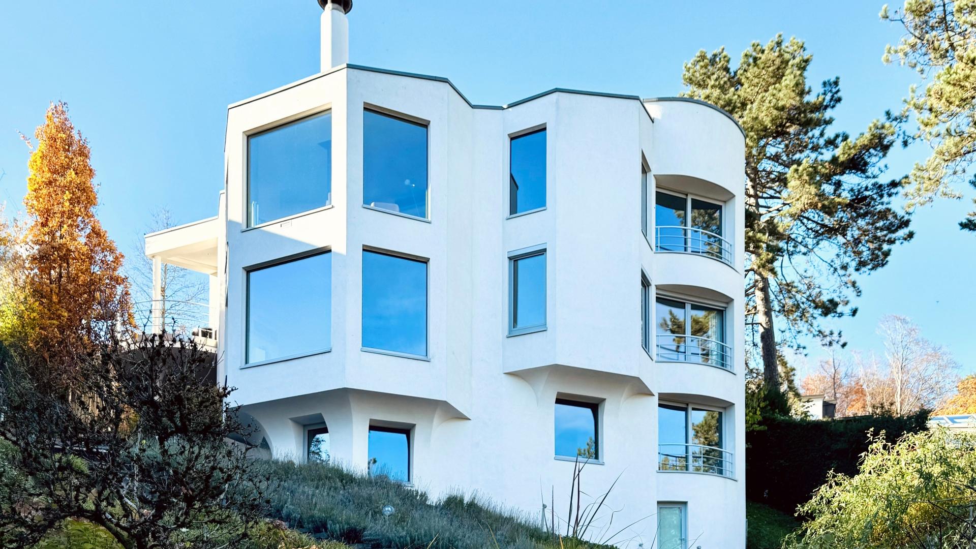 Remarquablement entretenue et implantée sur une parcelle de 10,70 ares à l’abri des regards, la "villa blanche" offre une surface totale d’environ 400 m². Ses formes organiques et ses bow-windows monumentaux proposent de sublimes perspectives sur la nature environnante et accueillent la lumière tout au long de la journée.