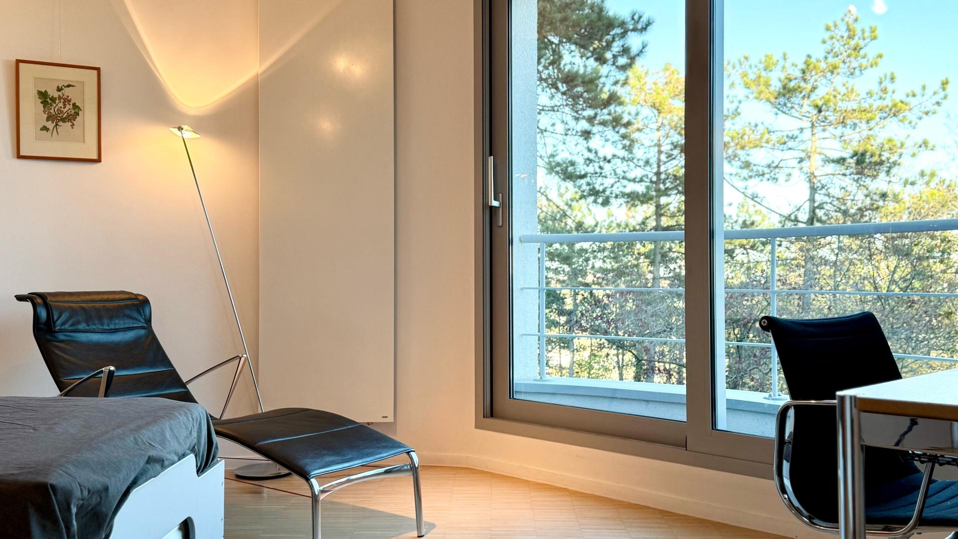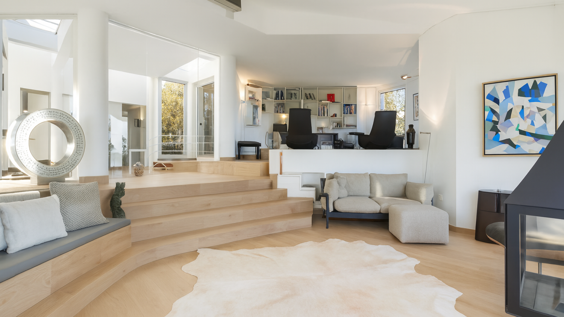Meticulously maintained and set on a beautifully private 10.70-are plot, the “villa blanche” offers a total surface area of approximately 400 sqm. Its organic shapes and monumental bow windows open onto stunning views of the surrounding nature and allow natural light to flow in throughout the day.