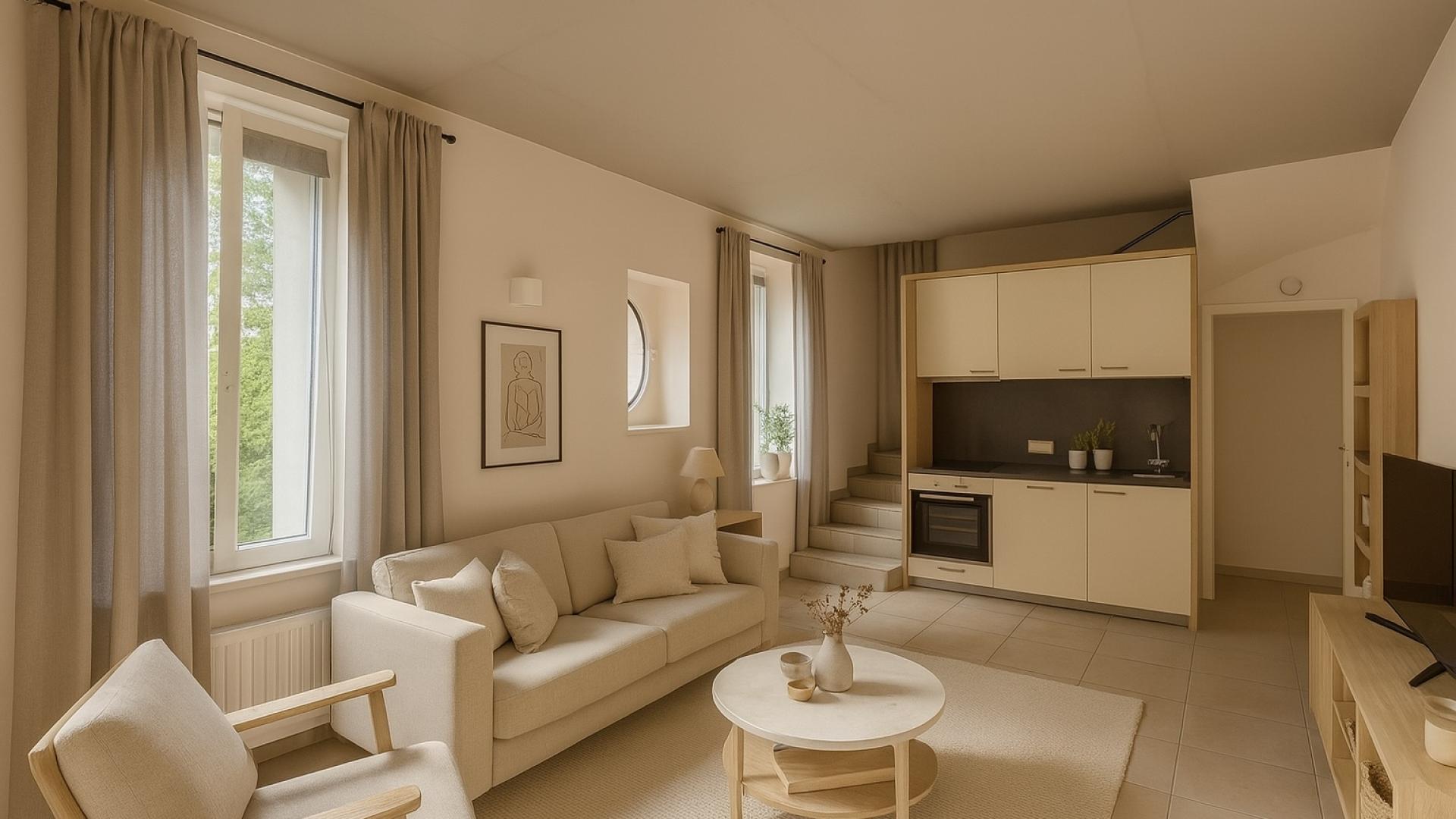 Ideally located in the lively Hollerich district, this bright duplex apartment offers ±48 sqm of living space, set at the rear of the building for maximum peace and privacy.